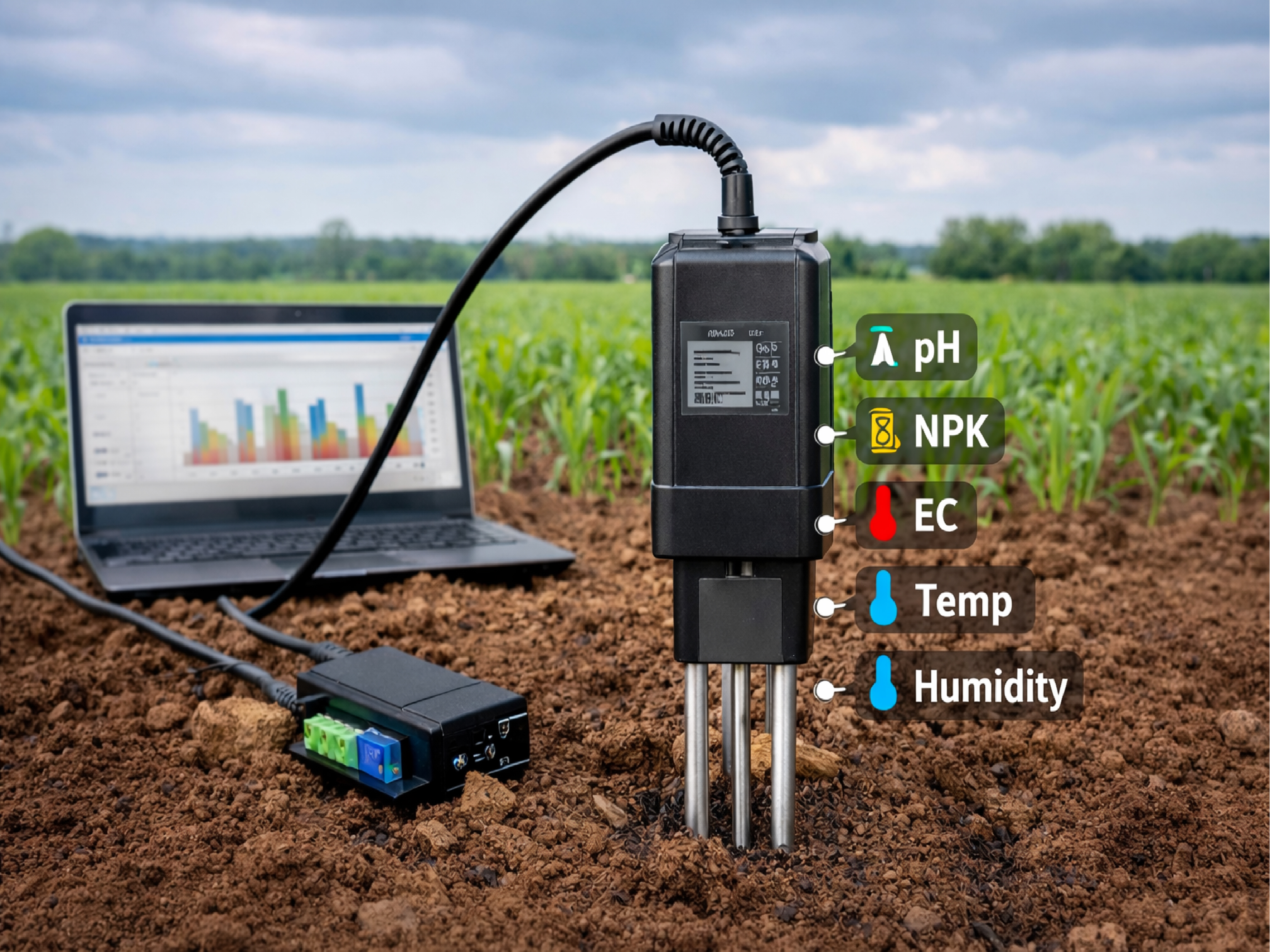 - In-situ real-time soil sensing: Advanced 7-in-1 sensors (pH, NPK, EC, temperature, moisture) with RS485 digital output deliver instant, non-destructive measurements directly from the field